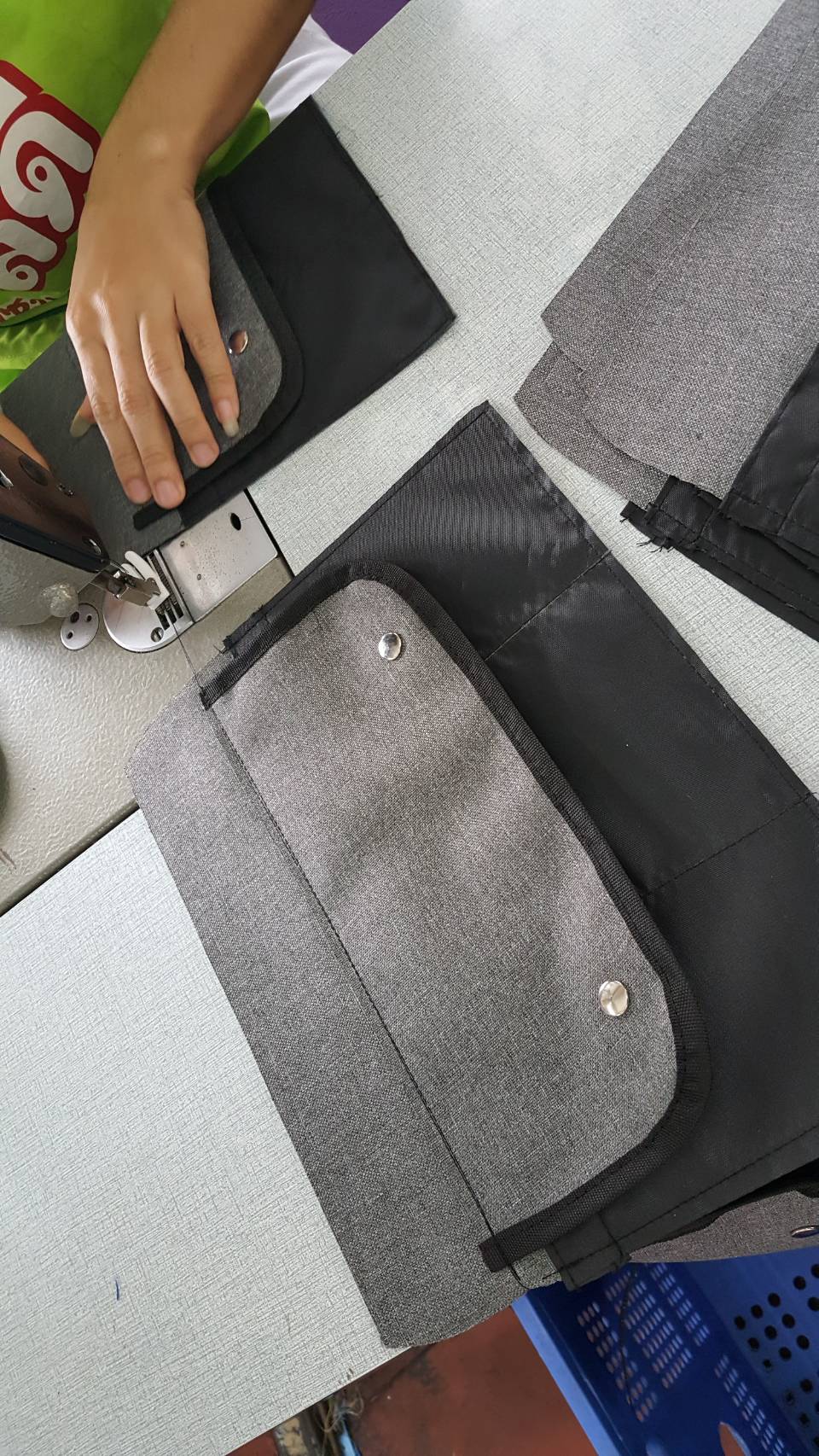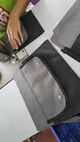 โรงงานเย็บกระเป๋าของเรา ได้มีการนำจักรคอมพิวเตอร์ มาใช้ในขั้นตอนที่ต้องการความแม่นยำ สวยงาม ของแนวเย็บตะเข็บ บนชิ้นงาน และเนื่องด้วยเทคโนโลยีต่างๆในยุคปัจจุบันที่มเหล่านี้เองยังช่วยลดเวลาการทำงานในการผลิตได้อีกด้วย แต่อาจจะมีต้นทุน/เวลาในการ Setup บ้าง ในด้านการตัดเย็บที่ต้องใช้ความชำนาญ ทักษะในการเย็บ ของช่างเย็บกระเป๋า ก็ยังคงเป็นหัวใจหลักของการผลิต โดยเราเน้นในเรื่องความละเอียดของ การเย็บชิ้นส่วนต่างๆ ไปจนถึงการวางชิ้นงานย่อยลงบนชิ้นงานหลัก ในทางเทคนิคการเตรียมงานก่อนการผลิต จำเป็นต้องมีการ mark ตำแหน่งไว้ก่อน ขั้นตอนที่สำคัญอีกขั้นตอนหนึ่ง คือการเย็บประกอบกระเป๋า ซึ่งต้องเน้นความแข็งแรงและสวยงามไปพร้อมๆกัน และโรงงานของเรา มีขั้นตอนการตรวจสอบคุณภาพหลังจากการผลิต ก่อนที่จะนำไป Pack เพื่อเตรียมส่งมอบต่อไปให้กับลูกค้า